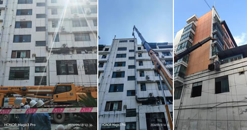 隆山科峰公司積極落實綿陽市住建委《關(guān)于全力做好物業(yè)小區(qū)外墻脫漏安全隱患排查整治工作的緊急通知》(綿住建委函〔2024〕504號)文件精神,深入自查外墻附著物墜落的安全隱患。針對排查出的金鵬現(xiàn)代城商務樓3樓外墻廢棄煙囪可能墜落的隱患問題,公司精心組織,有效排除了隱患。